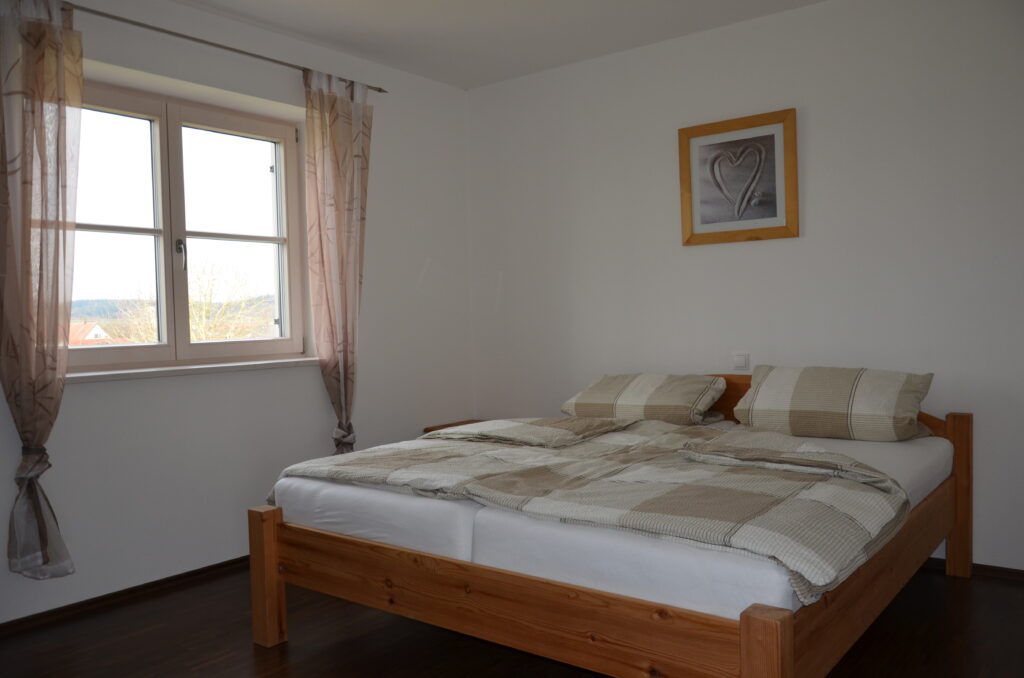 Die lichtdurchflutete, sehr helle Ferienwohnung bietet eine große Wohnküche, ein Bad mit Dusche und Toilette, sowie zwei Schlafzimmer mit zwei Einzelbetten bzw. großem Doppelbett.